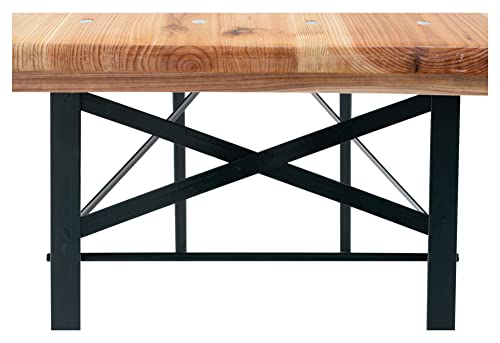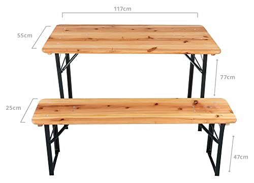 - Robuste 3-teilige Biertischtgarnitur (2x Bank, 1x Tisch), stabile Metallscharniere leicht zu öffnen / zu schließen